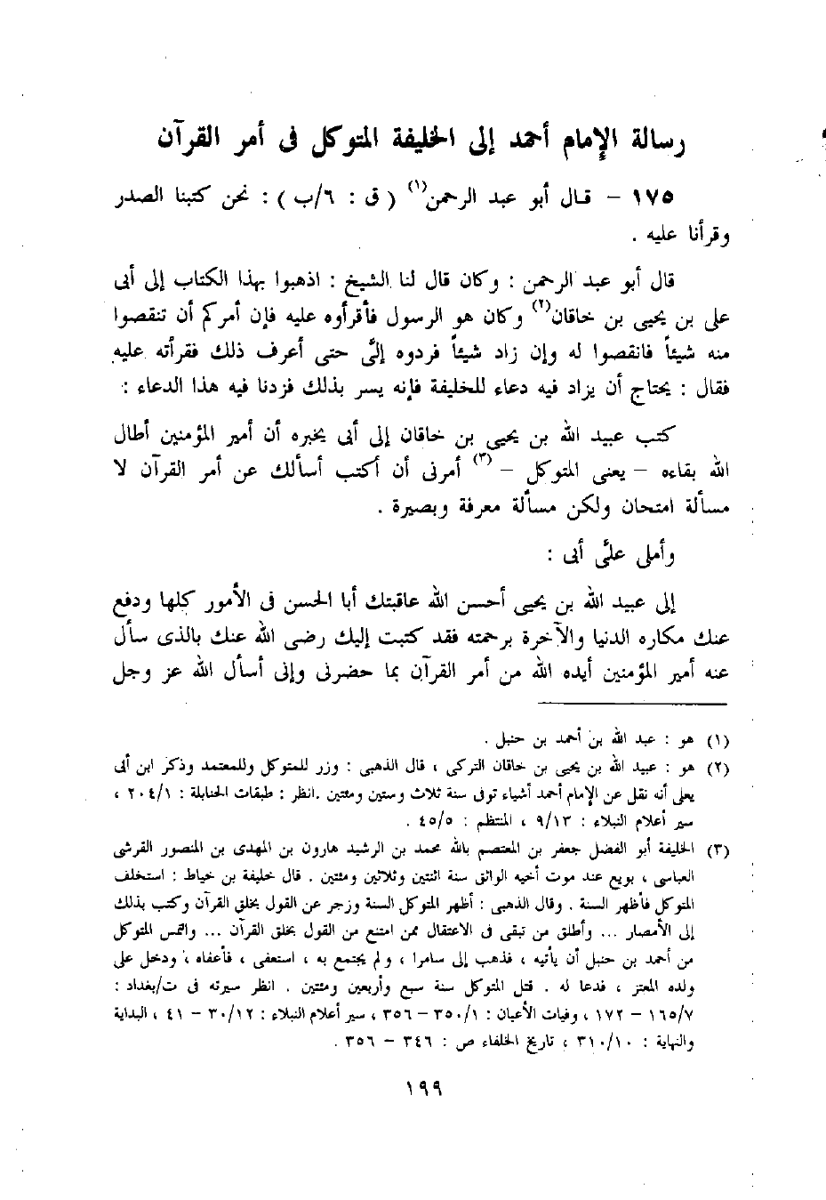 رسالة الإمام أحمد إلى الخليفة المتوكل فى أمر القرآن