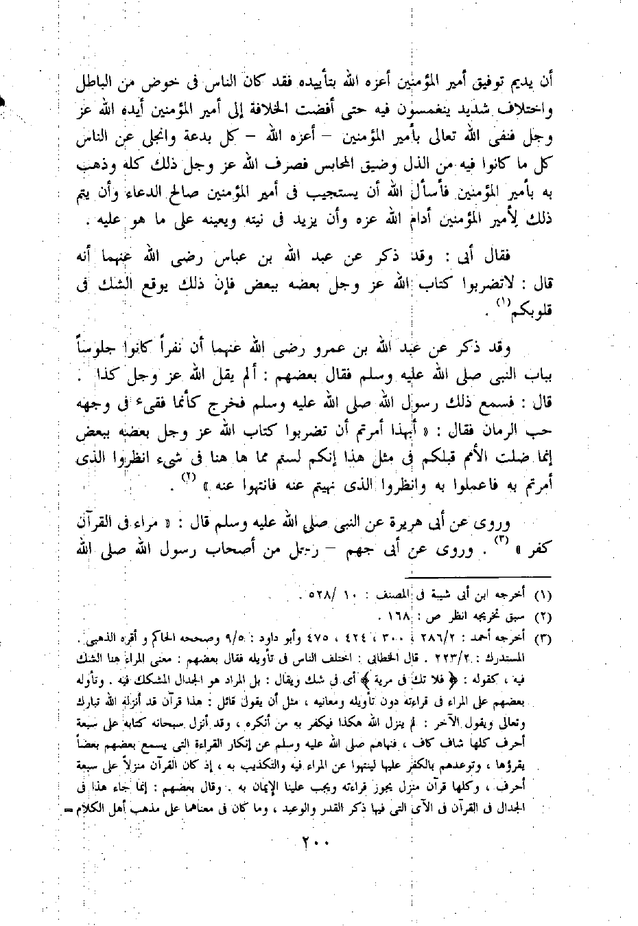 وروى عن أبى هريرة عن النبي صلى اللّه عليه وسلم قال: «مراء فى القرآن كفر» «3». وروى عن أبى جهم- رجل من أصحاب رسول اللّه صلى اللّه