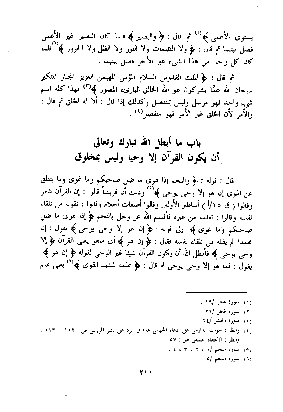 باب ما أبطل اللّه تبارك وتعالى أن يكون القرآن إلا وحيا وليس بمخلوق