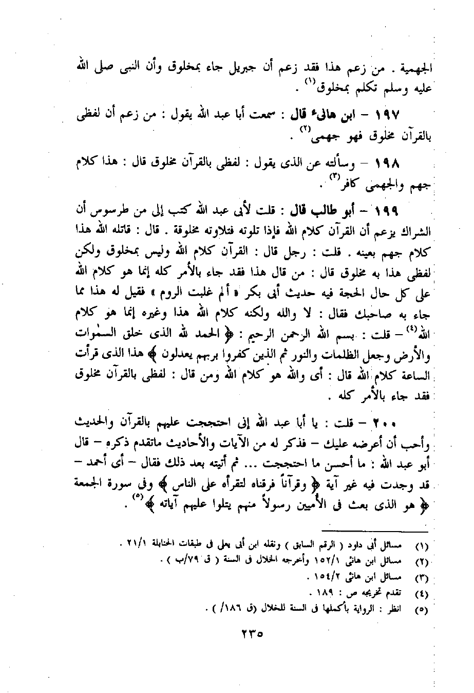 (5) انظر: الرواية بأكملها فى السنة للخلال (ق 186/).