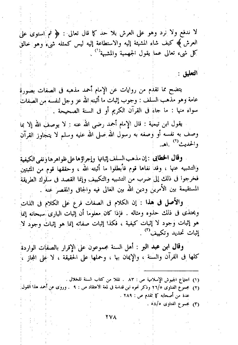(2) مجموع الفتاوى 5/ 26 وذكر نحوه ابن قدامة فى لمعة الاعتقاد ص: 9. وروى عن أحمد هذا القول عدة من أصحابه كما تقدم ص: 289.