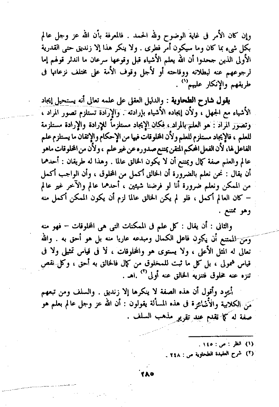 وإن كان الأمر فى غاية الوضوح وللّه الحمد. فالمعرفة بأن اللّه عز وجل عالم بكل شيء بما كان وما سيكون أمر فطرى. ولا ينكر هذا إلا زنديق حتى القدرية الأولى الذين جحدوا أن اللّه يعلم الأشياء قبل وقوعها سرعان ما اندثر قولهم إما لرجوعهم عنه لبطلانه ووقاحته أو لأجل وقوف الأمة على مختلف نزعاتها فى طريقهم والإنكار عليهم «1».