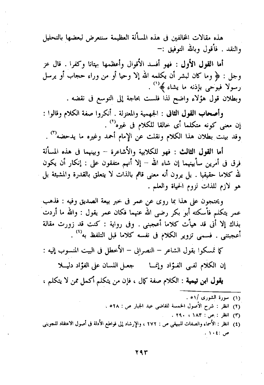(4) انظر: الأسماء والصفات للبيهقى ص: 272، والإرشاد إلى قواطع الأدلة فى أصول الاعتقاد للجوينى ص: 104.
