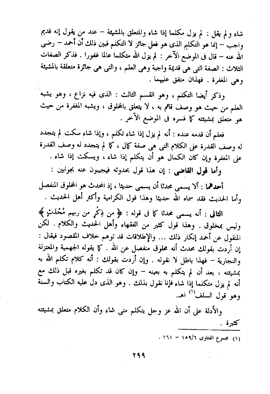 فعلم أن قدمه عنده: أنه لم يزل إذا شاء تكلم، وإذا شاء سكت لم يتجدد له وصف القدرة على الكلام التى هى صفة كمال، كما لم يتجدد له وصف القدرة على المغفرة وإن كان الكمال هو أن يتكلم إذا شاء، ويسكت إذا شاء.