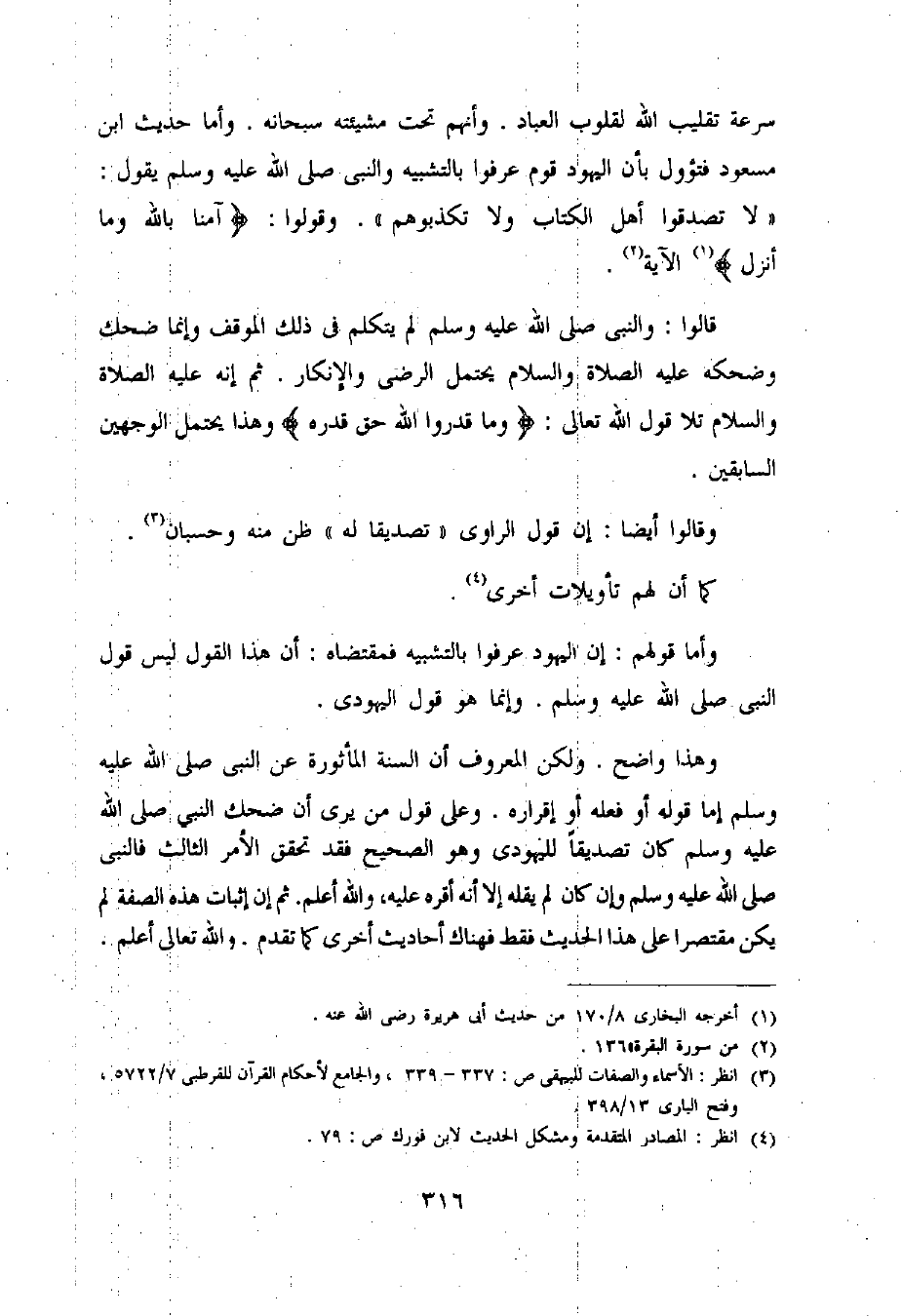 304 - قال فى رواية حنبل: يضحك اللّه ولا نعلم كيف ذلك إلا بتصديق الرسول.