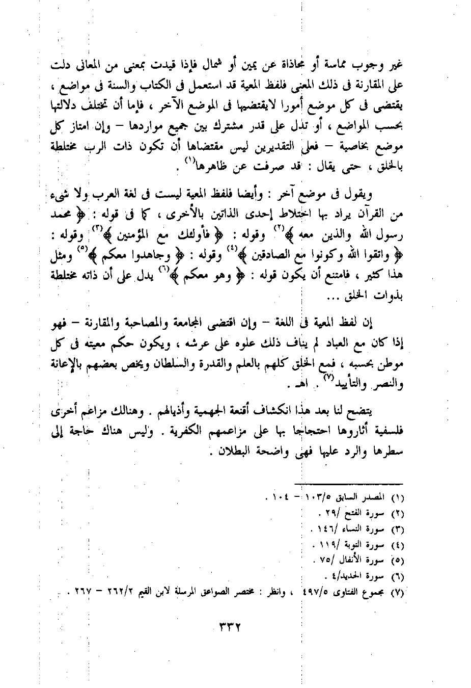 (7) مجموع الفتاوى 5/ 497، وانظر: مختصر الصواعق المرسلة لابن القيم 2/ 262 - 267.