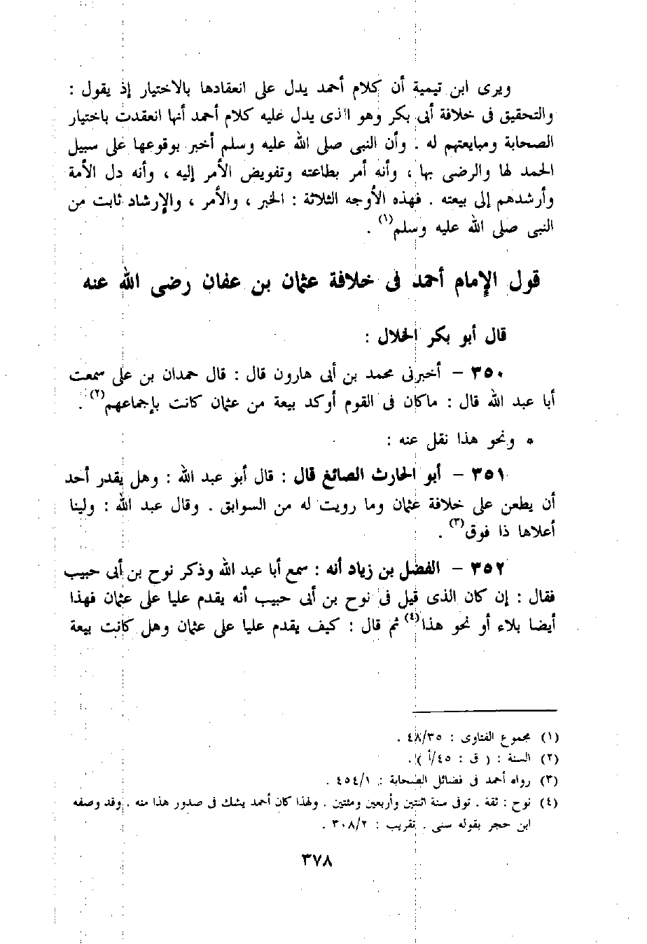 قول الإمام أحمد فى خلافة عثمان بن عفان رضى اللّه عنه