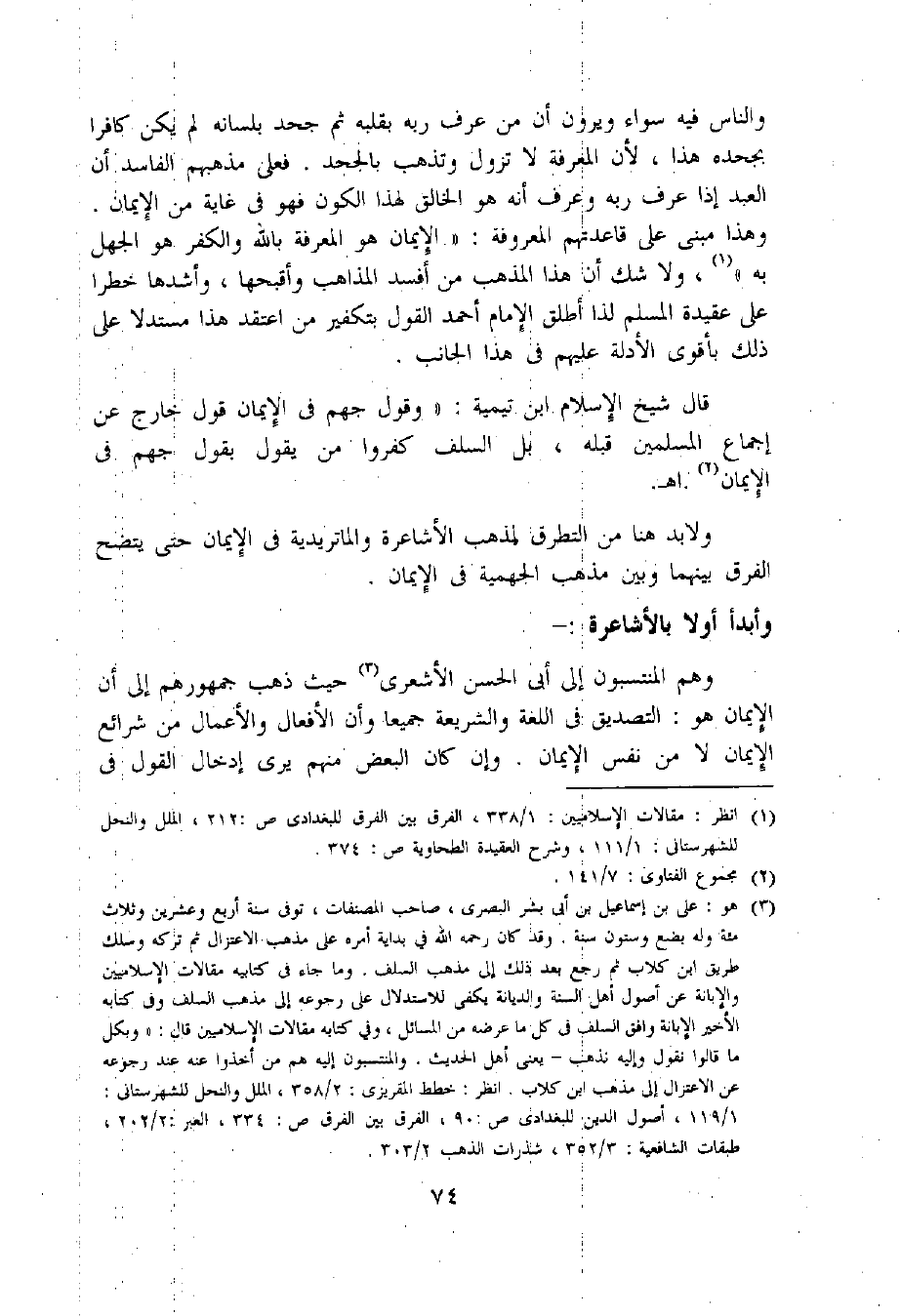 (1) انظر: مقالات الإسلاميين: 1/ 338، الفرق بين الفرق للبغدادى ص: 212، الملل والنحل للشهرستانى: 1/ 111، وشرح العقيدة الطحاوية ص: 374.