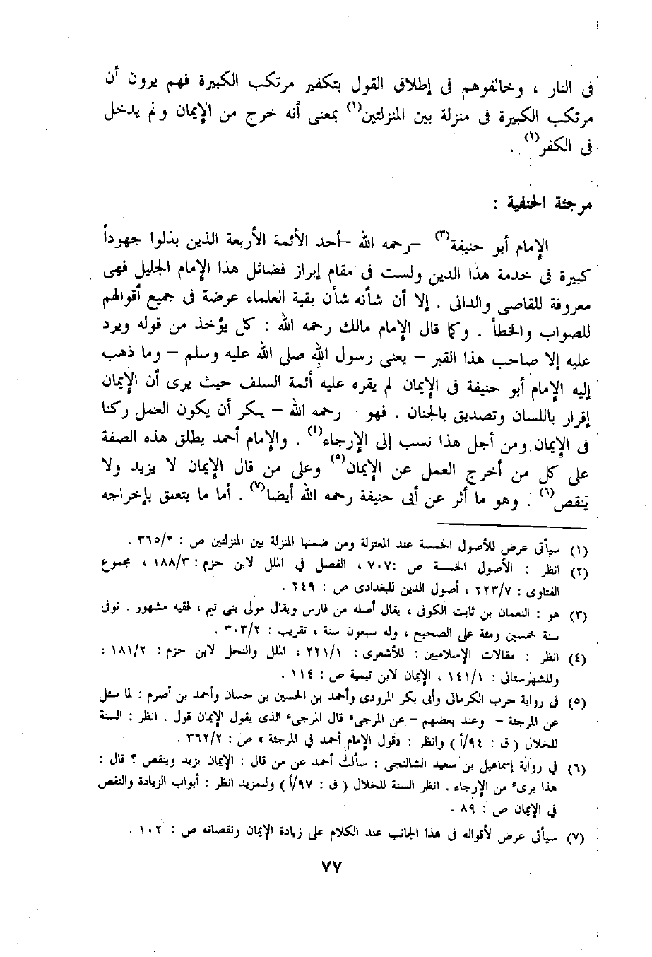 (4) انظر: مقالات الإسلاميين: للأشعرى: 1/ 221، الملل والنحل لابن حزم: 2/ 181، وللشهرستانى: 1/ 141، الإيمان لابن تيمية ص: 114.