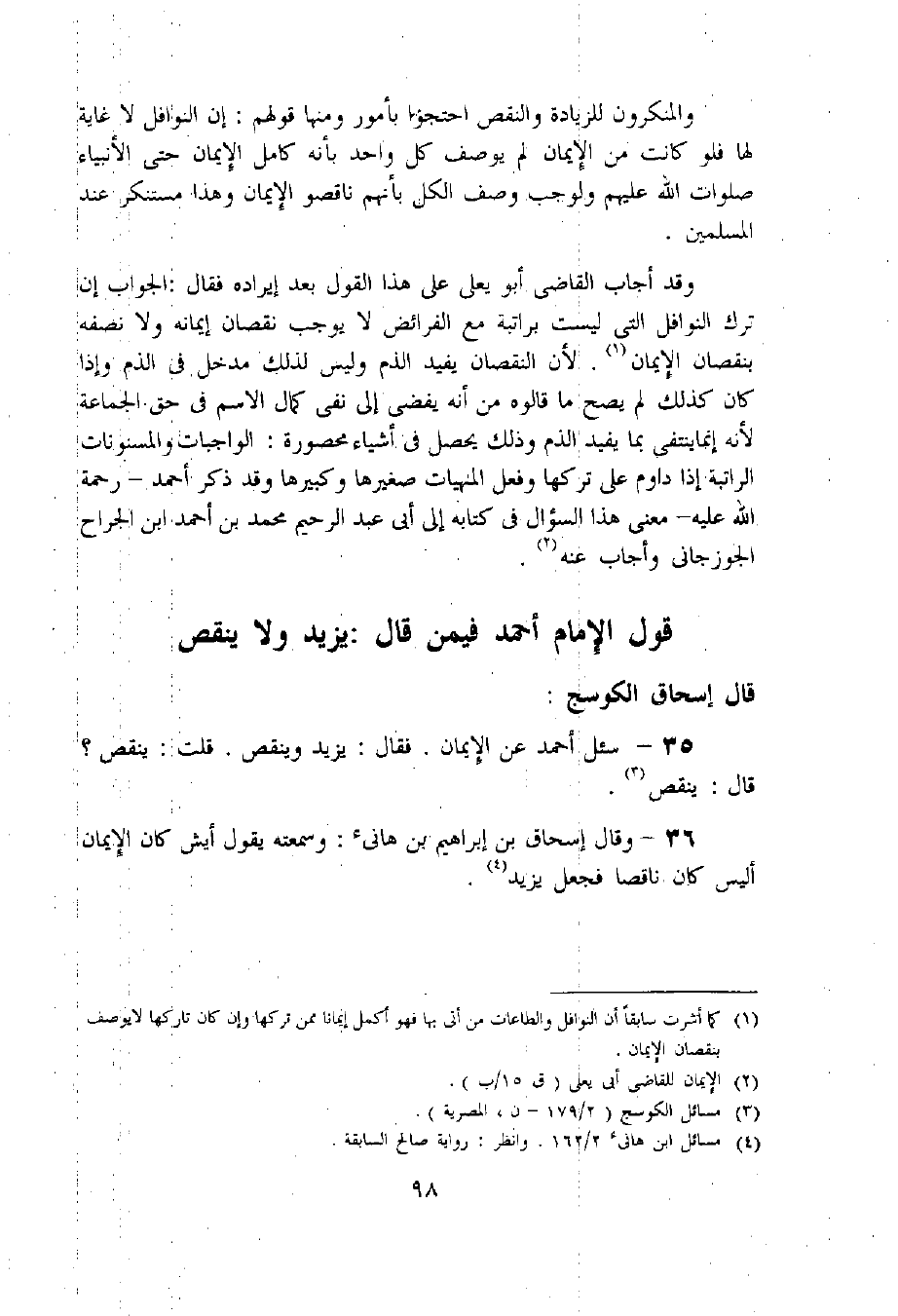 35 - سئل أحمد عن الإيمان. فقال: يزيد وينقص. قلت: ينقص؟