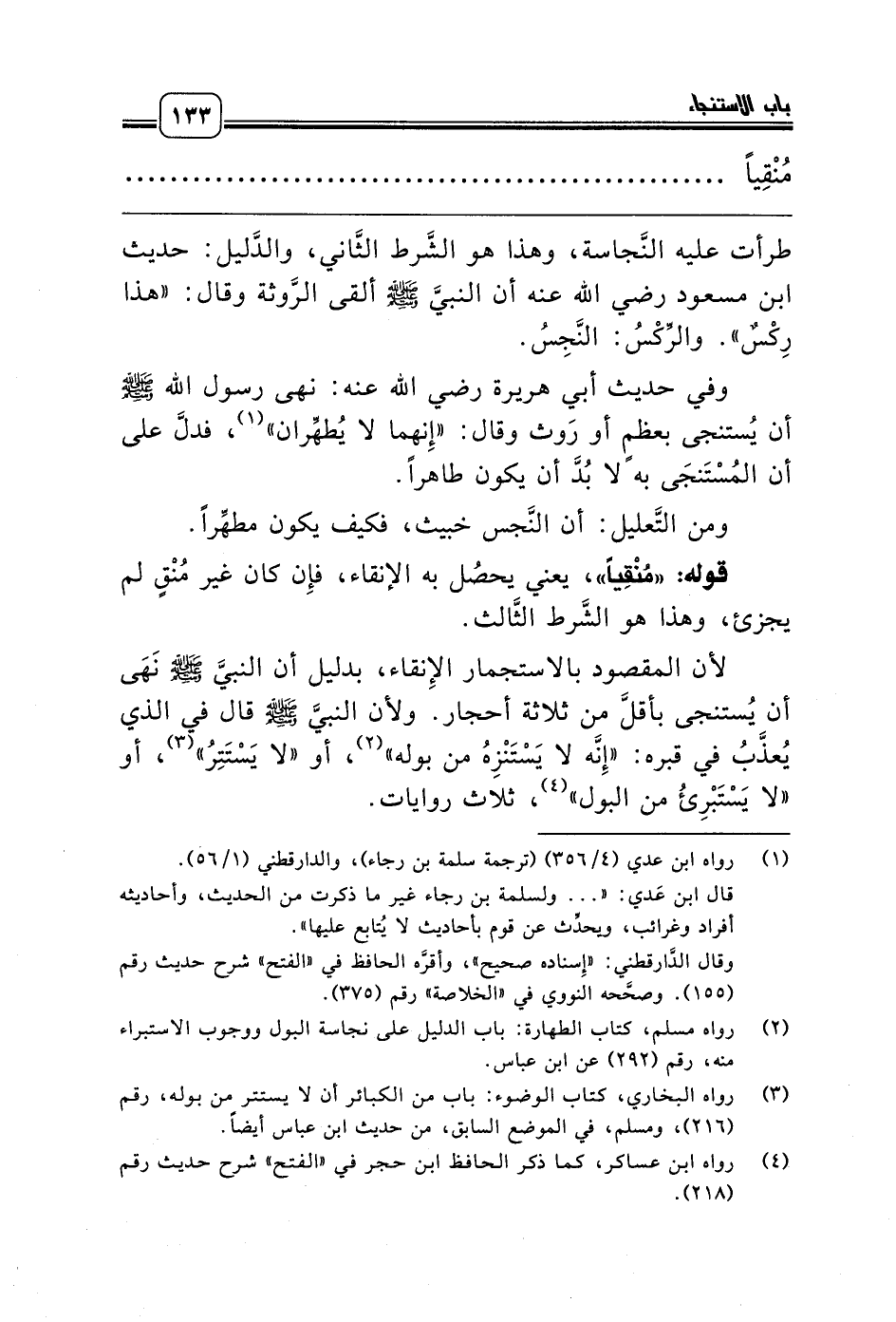 (¬2) رواه مسلم، كتاب الطهارة: باب الدليل على نجاسة البول ووجوب الاستبراء منه، رقم (292) عن ابن عباس.