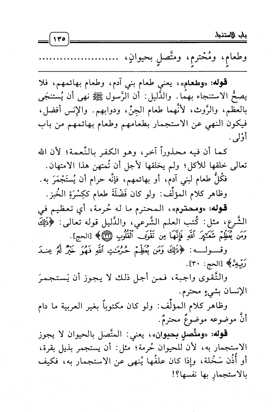 وطعامٍ، ومُحْترمٍ، ومتَّصلٍ بحيوانٍ، ...........
