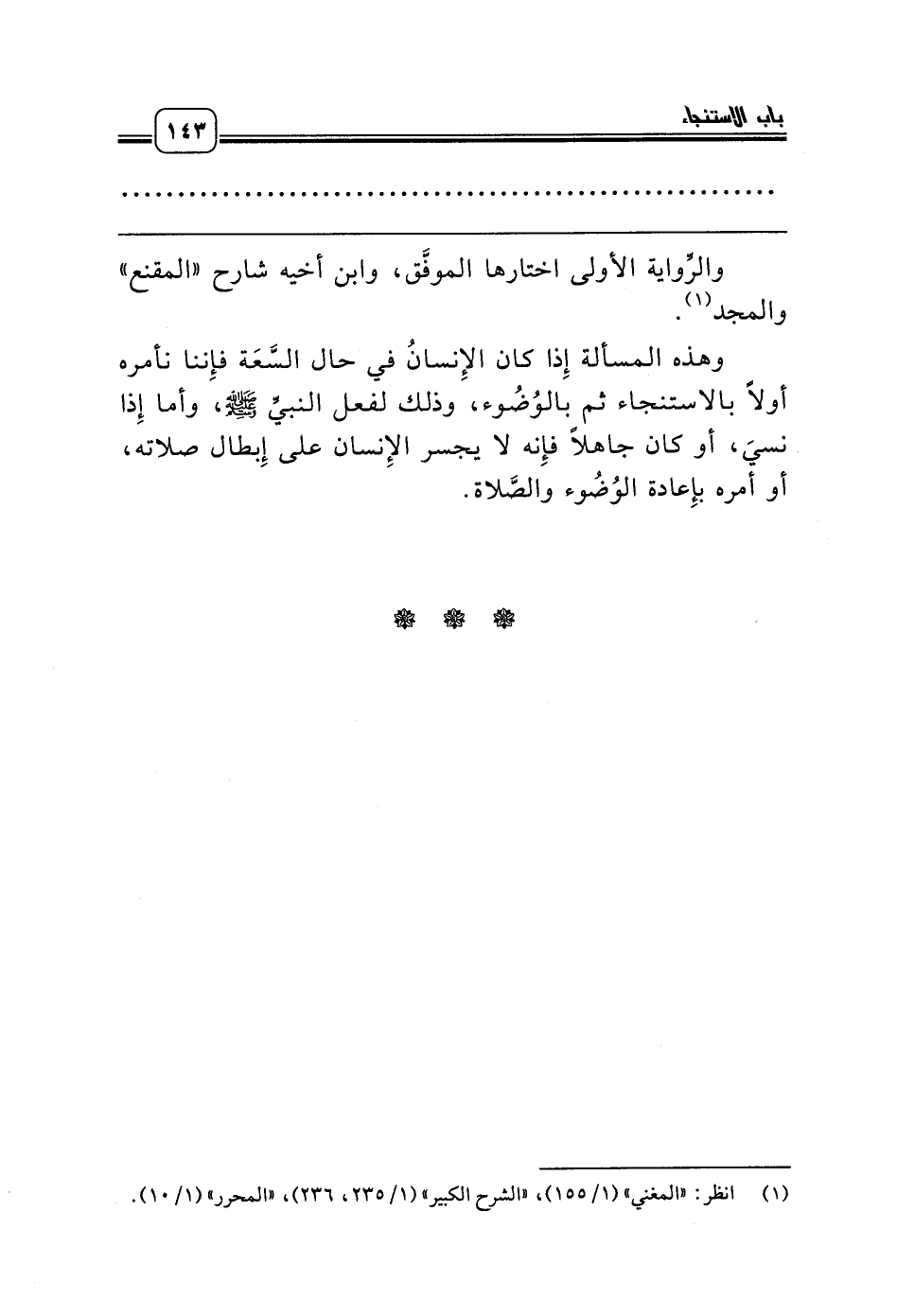 (¬1) انظر: «المغني» (1/ 155)، «الشرح الكبير» (1/ 235، 236)، «المحرر» (1/ 10).