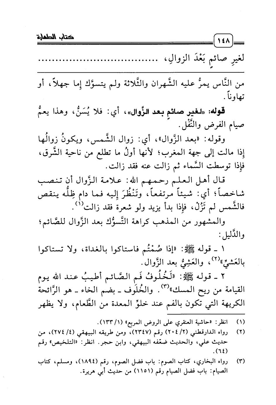 1 - قوله صلّى الله عليه وسلّم: «إذا صُمْتُم فاستاكوا بالغداة، ولا تستاكوا بالعَشيِّ» (¬2)، والعَشِيُّ بعد الزَّوال.