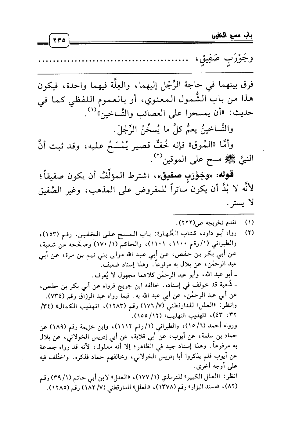 (¬2) رواه أبو داود، كتاب الطَّهارة: باب المسح على الخفين، رقم (153)، والطبراني (1/رقم 1100، 1101)، والحاكم (1/ 170) وصحَّحه عن شعبة، عن أبي بكر بن