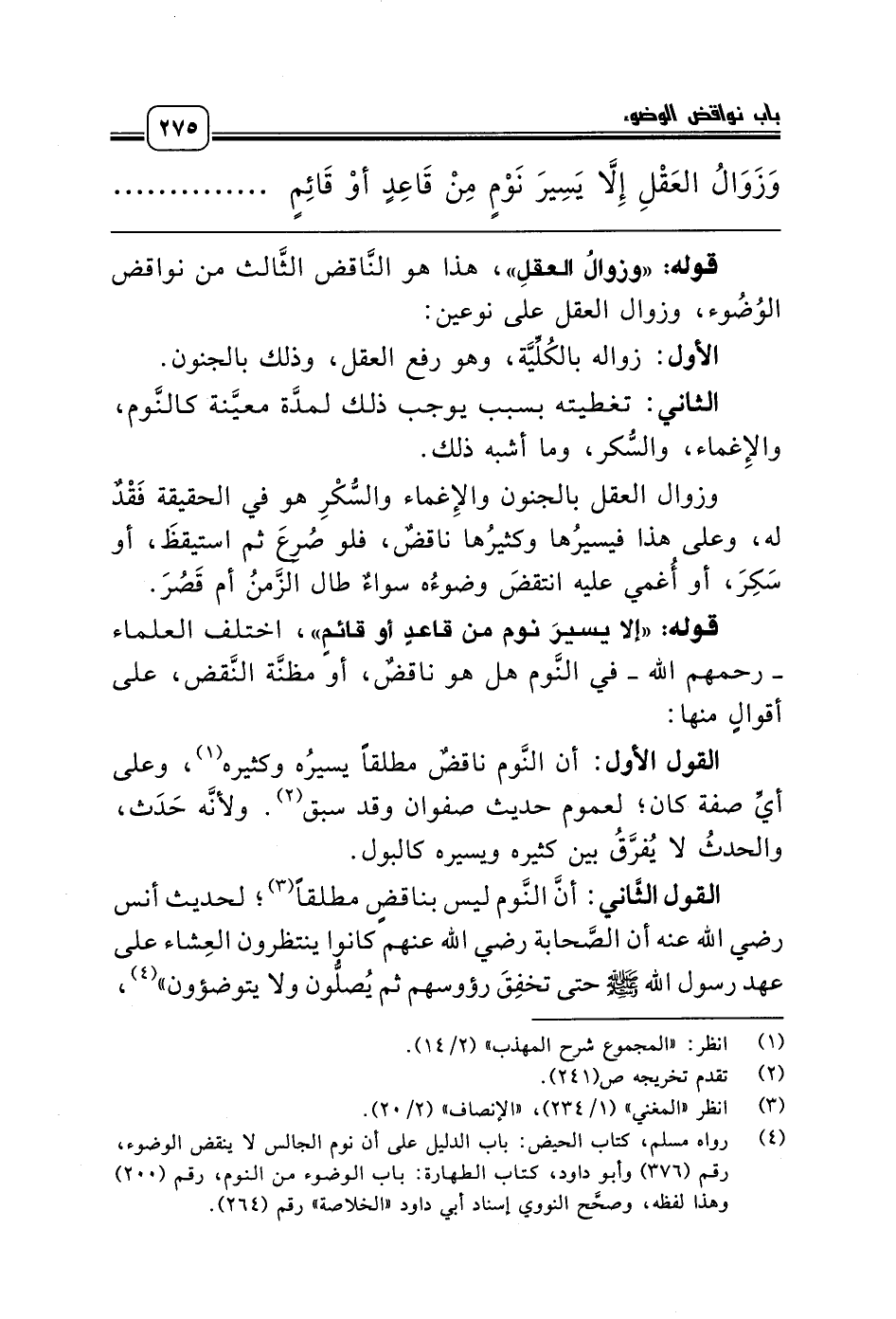 (¬4) رواه مسلم، كتاب الحيض: باب الدليل على أن نوم الجالس لا ينقض الوضوء، رقم (376) وأبو داود، كتاب الطهارة: باب الوضوء من النوم، رقم (200) وهذا