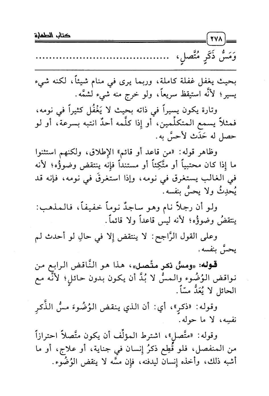 وَمَسُّ ذَكَرٍ مُتَّصلٍ، أَوْ قُبُلٍ بظَهْرِ كَفِّه، أَوْ بَطْنِه، ........