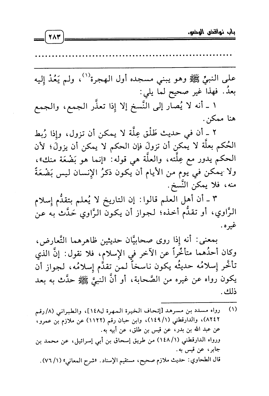 1 - أنه لا يُصار إلى النَّسخ إلا إِذا تعذَّر الجمع، والجمع هنا ممكن .....