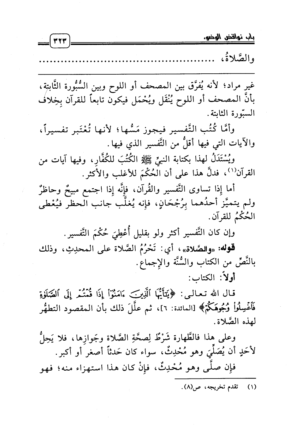 قوله: «والصَّلاة»، أي: تَحْرُمُ الصَّلاة على المحدِثِ، وذلك بالنَّصِّ من الكتاب والسُّنَّة والإِجماع.