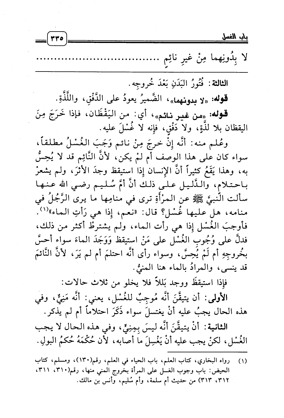 (¬1) رواه البخاري، كتاب العلم، باب الحياء في العلم، رقم (130)، ومسلم، كتاب الحيض: باب وجوب الغسل على المرأة بخروج المني منها، رقم (310، 311، 312، 313) من حديث أم سلمة، وأم سُليم، وأنس بن مالك.