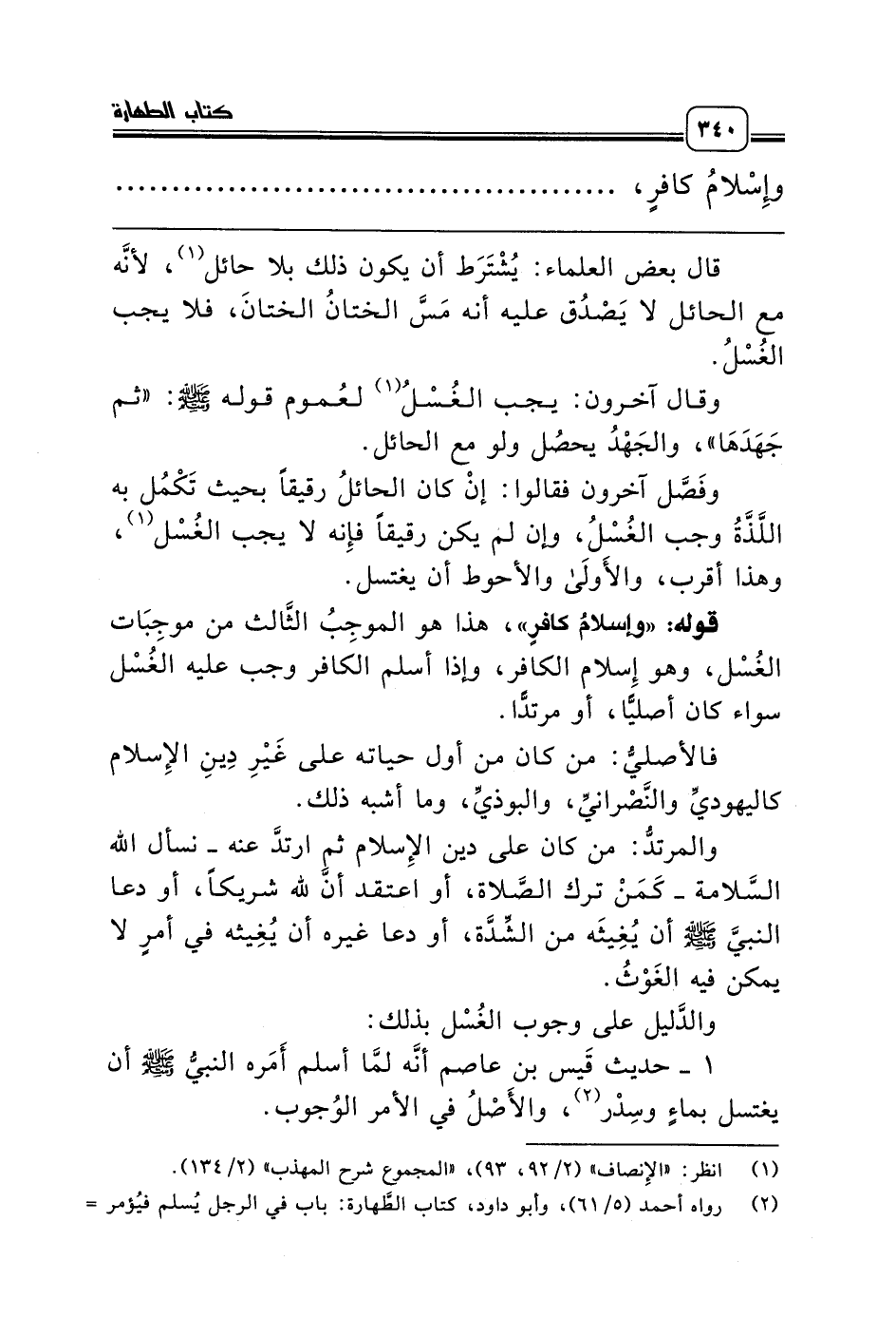 (¬1) انظر: «الإِنصاف» (2/ 92، 93)، «المجموع شرح المهذب» (2/ 134).