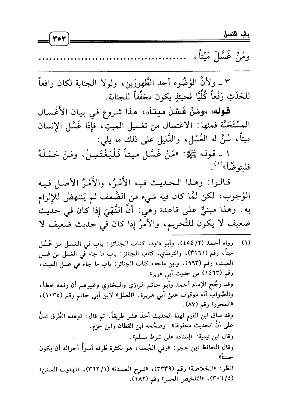 (¬1) رواه أحمد (2/ 454)، وأبو داود، كتاب الجنائز: باب في الغسل من غَسَّل ميتاً، رقم (3161)، والترمذي، كتاب الجنائز: باب ما جاء في الغسل من غسل الميت، رقم (993)، وابن ماجه، كتاب الجنائز: باب ما جاء في غسل الميت، رقم (1463) من حديث أبي هريرة.