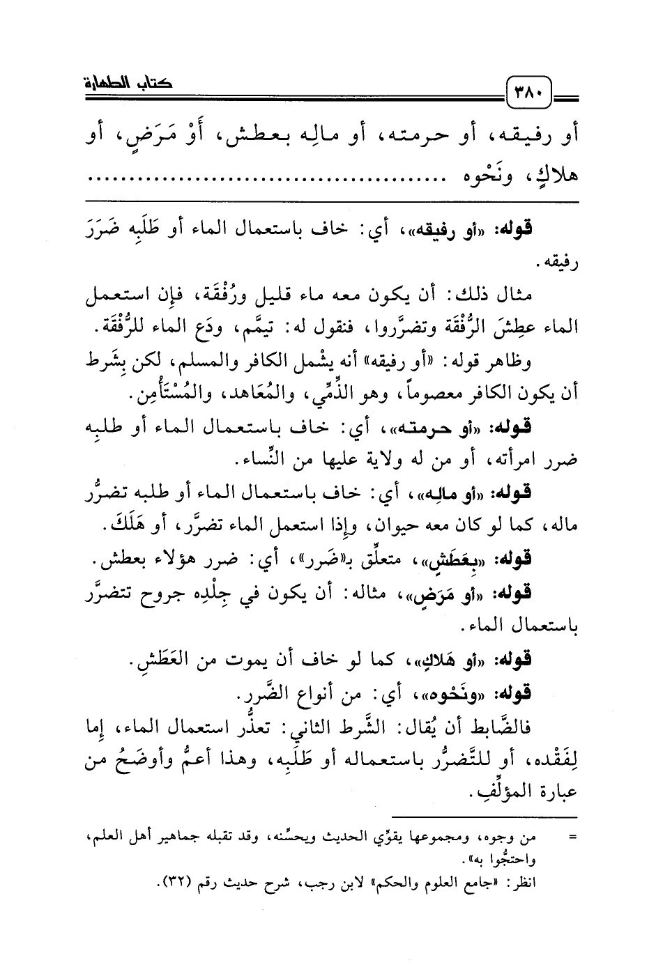 أو رفيقه، أو حرمته، أو مالِه بعطش، أَوْ مَرَضٍ، أو هلاكٍ، ونَحْوه ........