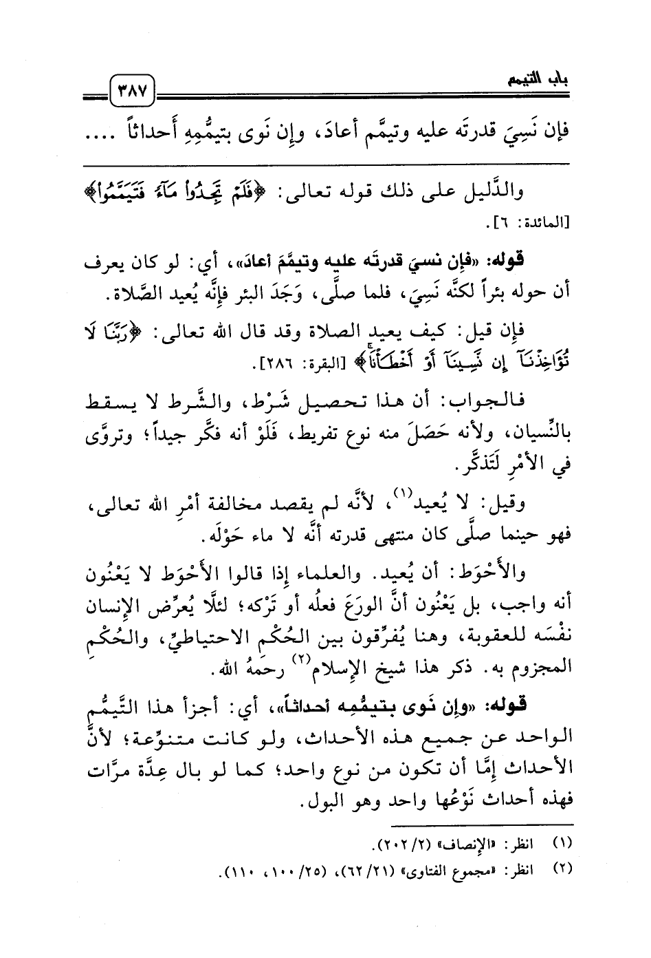 فإِن نسيَ قدرتَه عليه وتيمَّمَ أعادَ، وإِن نَوى بتيمُّمِه أحداثاً ..........