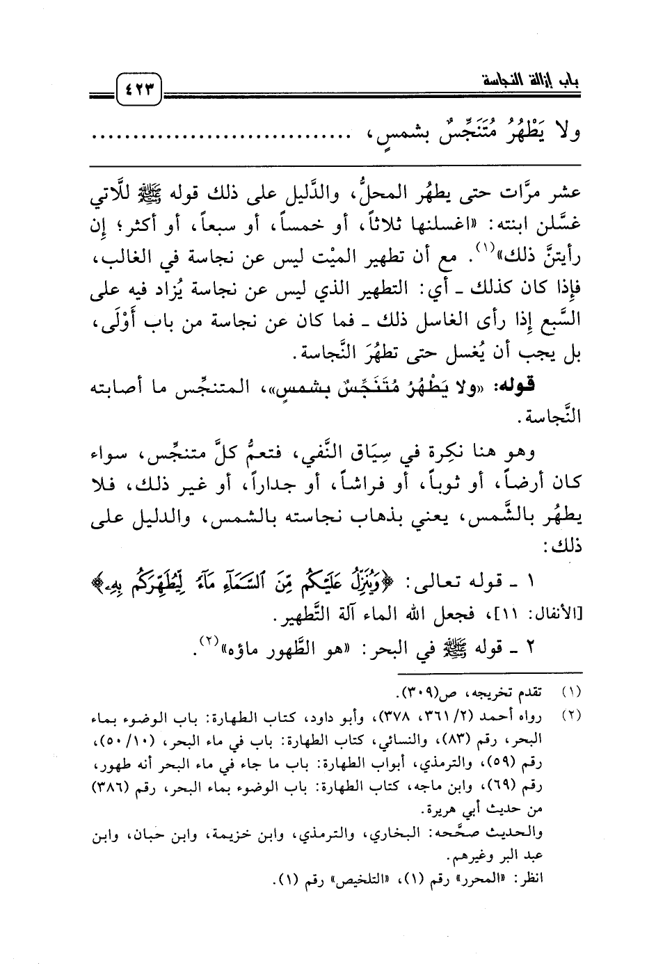 ولا يَطْهُرُ مُتَنَجِّسٌ بشمسٍ، ..................................