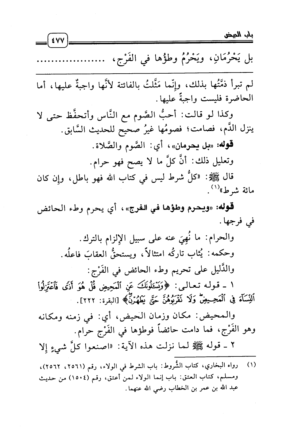(¬1) رواه البخاري، كتاب الشُّروط: باب الشرط في الولاء، رقم (2561، 2562)، ومسلم، كتاب العتق: باب إنما الولاء لمن أعتق، رقم (1504) من حديث عبد الله بن عمر بن الخطاب رضي الله عنهما.