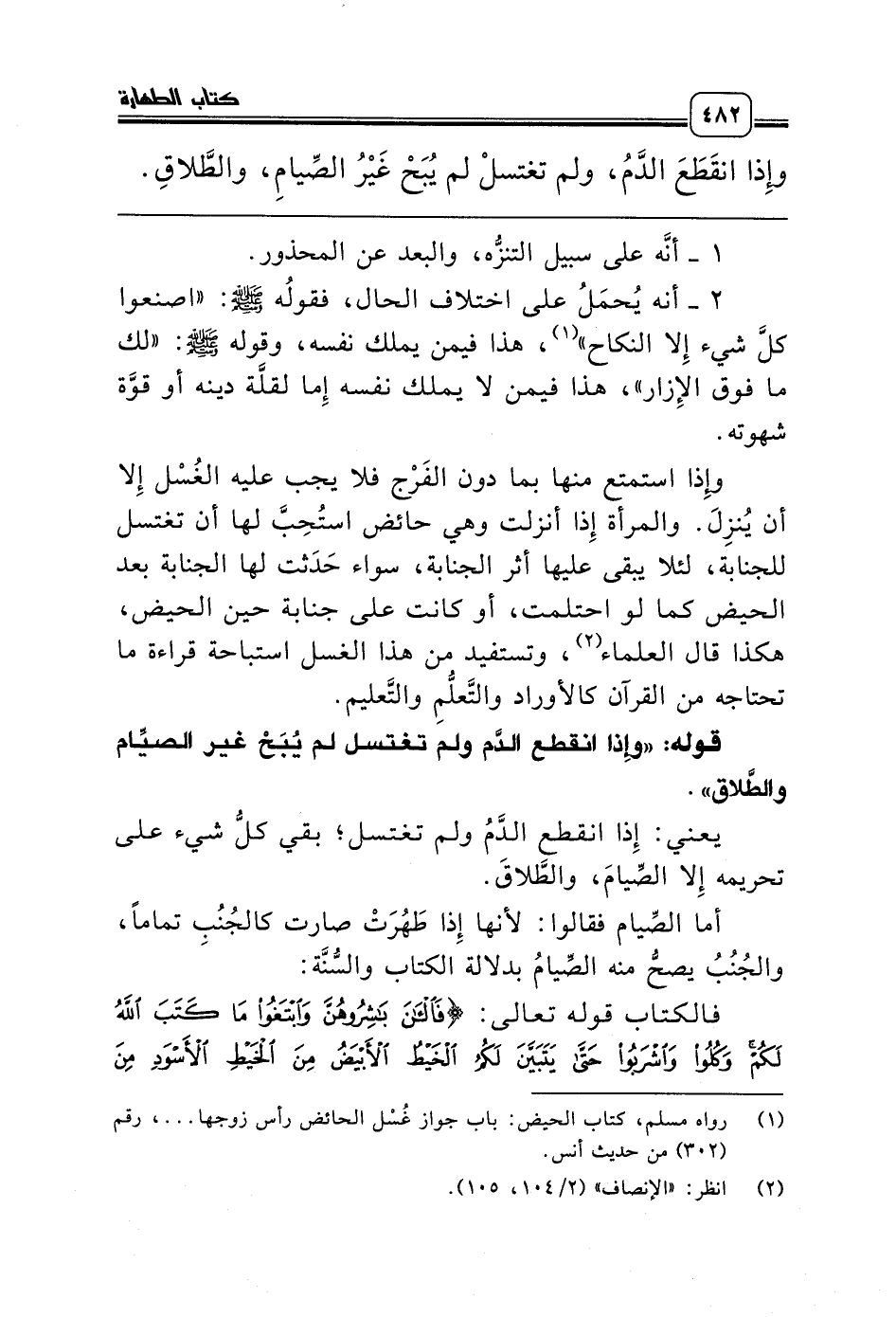 قوله: «وإِذا انقطع الدَّم ولم تغتسل لم يُبَحْ غير الصيِّام والطَّلاق».