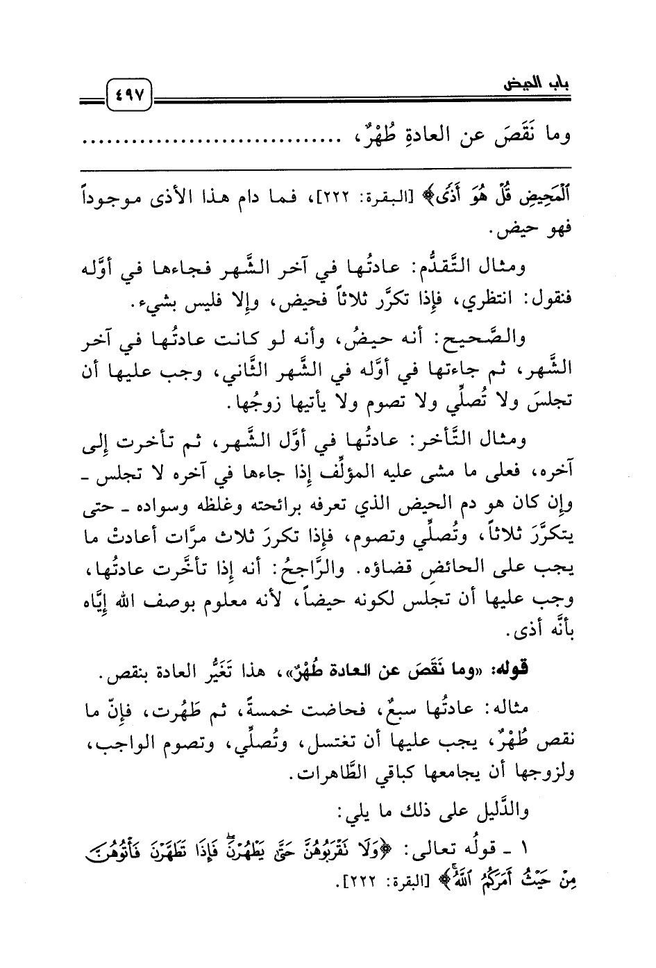 1 - قولُه تعالى: {وَلاَ تَقْرَبُوهُنَّ حَتَّى يَطْهُرْنَ فَإِذَا تَطَهَّرْنَ فَأْتُوهُنَّ مِنْ حَيْثُ أَمَرَكُمُ اللَّهُ} [البقرة: 222].