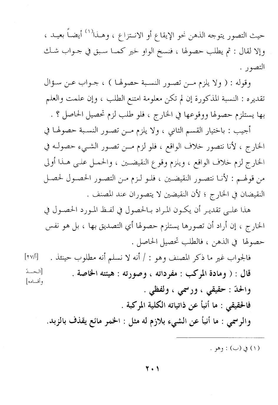 حيث التصور يتوجه الذهن نحو الإيقاع أو الانتزاع, وهذا أيضًا بعيد, وإلا لقال: ثم يطلب حصولها, فنسخ الواو خير كما سبق في جواب شك التصور.