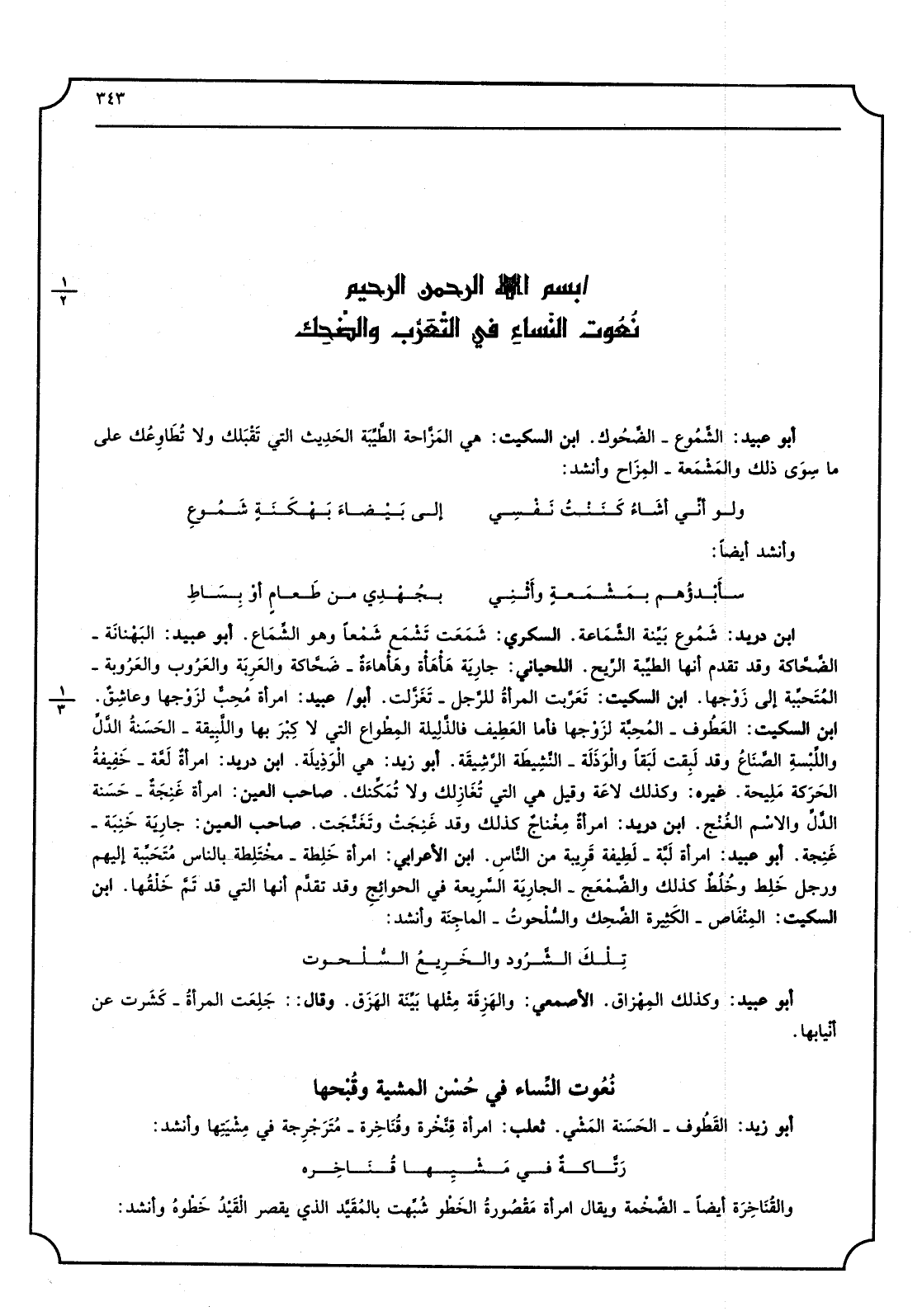3 - (نُعُوت النّساءِ فِي التَّعَرُّب والضَّحِك)
