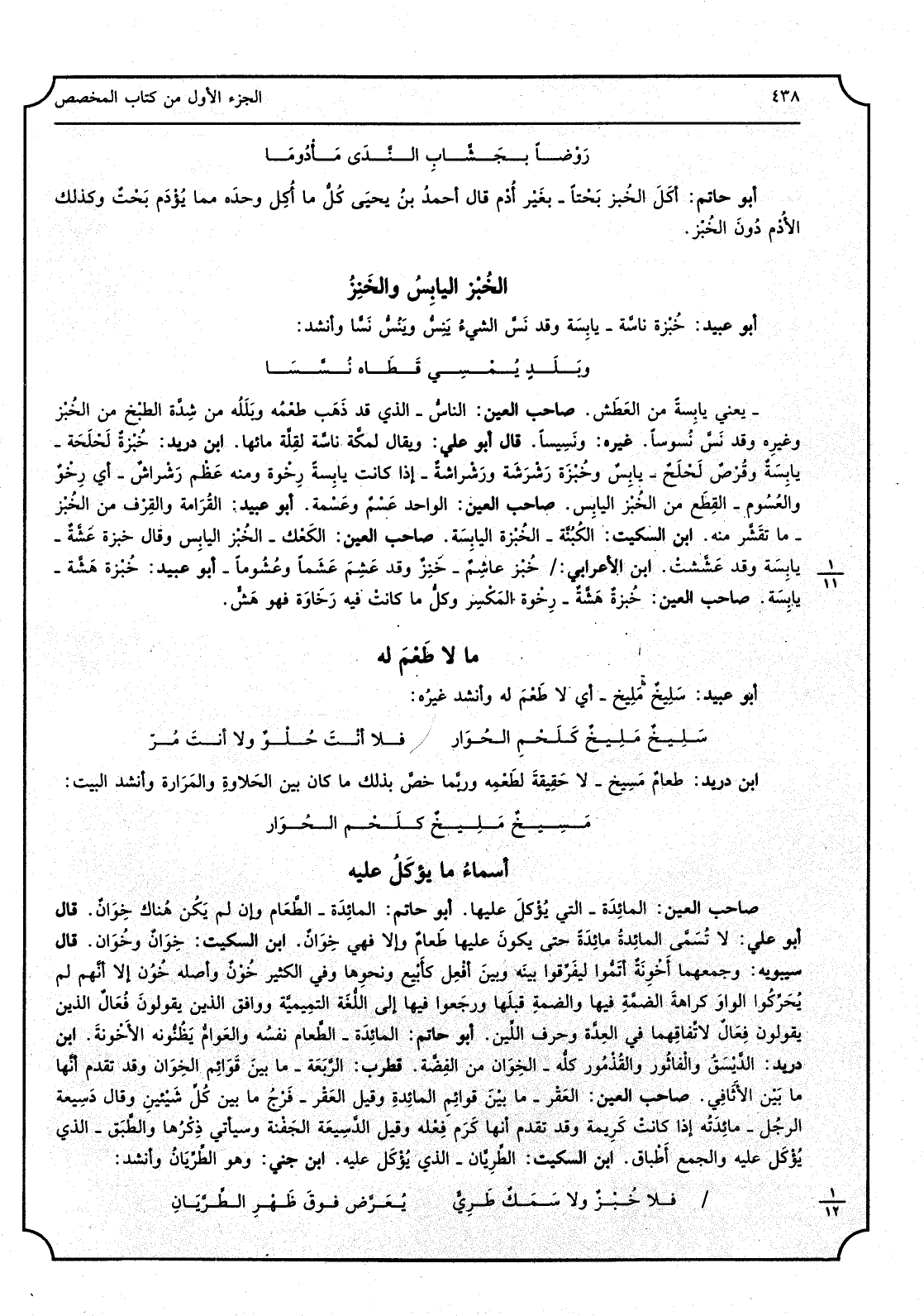 رَوْضاً بجَشَّابِ النَّدَى مَأْدُومَا أَبُو حَاتِم، أكَلَ الخُبز بحَتْاً - بغَيْر أُدْم قَالَ أحمدُ بن يحيى كّلُّ مَا أُكل وَحده مِمَّا يُؤْدَم بَحْتٌ وَكَذَلِكَ الأُدْم دُونَ الخُبْز