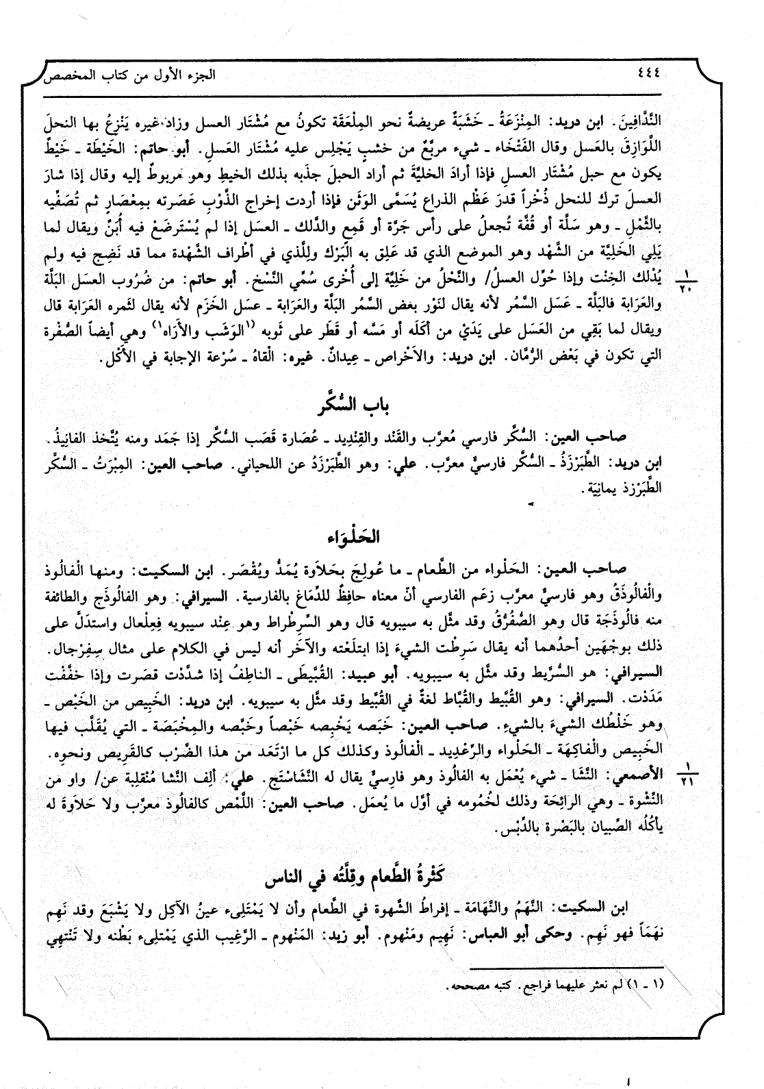 صَاحب الْعين، السُّكَّر فَارسي مُعرَّب والقَنْد والقِنْدِيد - عُصَارة قَصَب السُّكَّر إِذا جَمَد وَمِنْه يُتَّخذ الفانِيذُ، ابْن دُرَيْد، الطَّبَرْزّذُ - السُّكَّر فارسيُّ معرَّب، عَليّ، وَهُوَ الطَّبَرْزدُ عَن اللحياني، صَاحب الْعين، المِبْرَتُ - السُّكَّر الطَّبَرْزذ يمانِيَة