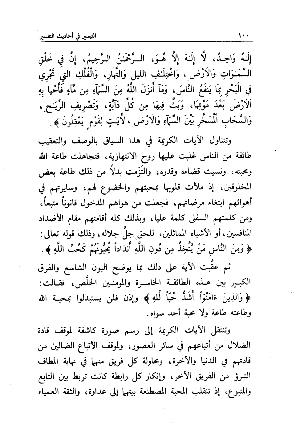 وتتناول الآيات الكريمة في هذا السياق بالوصف والتعقيب طائفة من الناس غلبت عليها روح الانتهازية، فتجاهلت طاعة الله ومحبته، ونسيت قضاءه وقدره، والتزمت بدلا من ذلك طاعة بعض المخلوقين، إذ ملأت قلوبها بمحبتهم والخضوع لهم، وسايرتهم في أهوائهم ابتغاء مرضاتهم، فجعلت من هواهم المدخول قانونا متبعا، ومن كلمتهم السفلى كلمة عليا، وبذلك كله أقامتهم مقام الأضداد المنافسين، أو الأشباه المماثلين، للحق جل جلاله، وذلك قوله تعالى: {وَمِنَ النَّاسِ مَنْ يَتَّخِذُ مِنْ دُونِ اللَّهِ أَنْدَادًا يُحِبُّونَهُمْ كَحُبِّ اللَّهِ}.