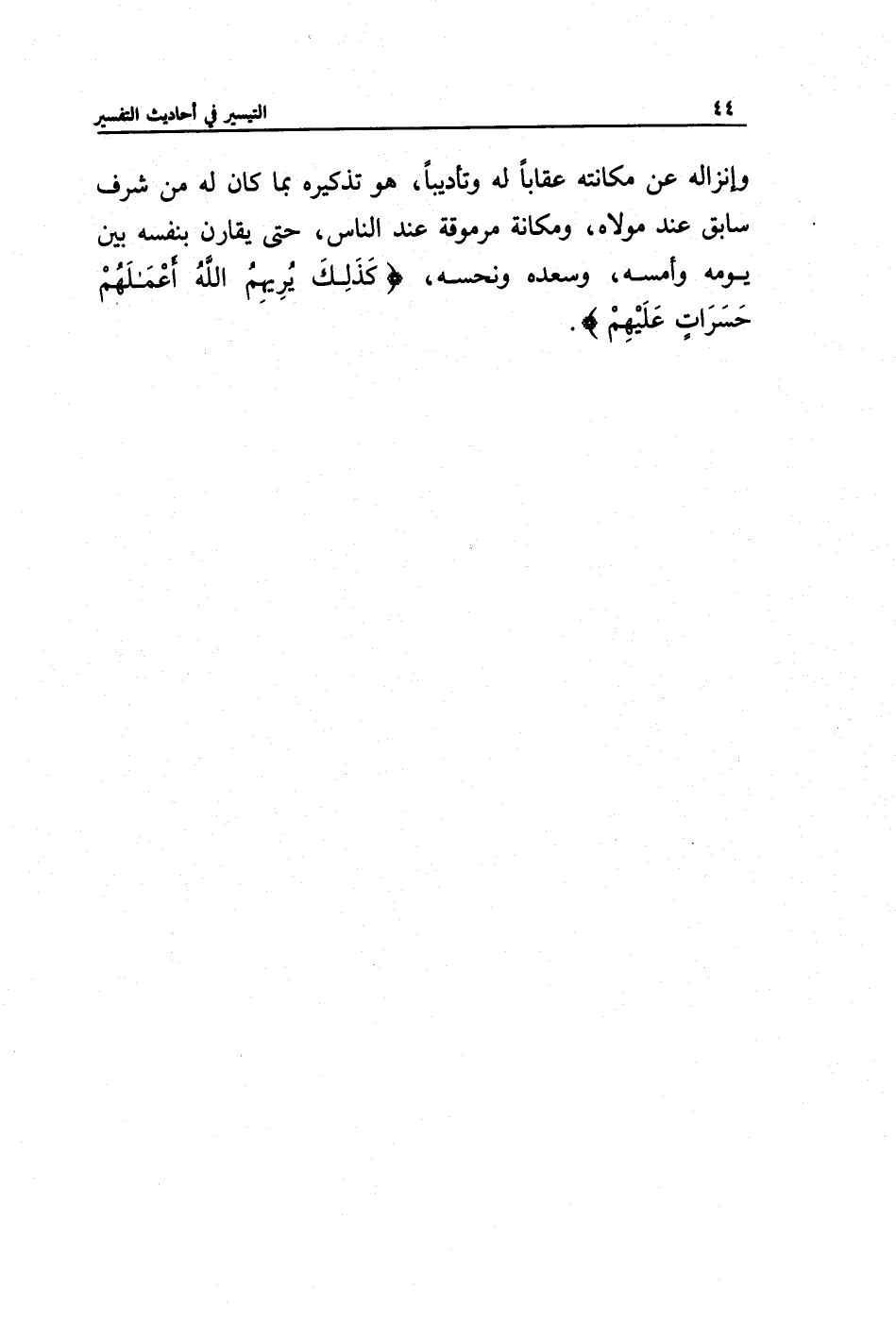 وإنزاله عن مكانته عقابا له وتأديبا، هو تذكيره بما كان له من شرف سابق عند مولاه، ومكانة مرموقة عند الناس، حتى يقارن بنفسه بين يومه وأمسه، وسعده ونحسه، {كَذَلِكَ يُريهِمُ اللهُ أعمَالَهُم حَسَراتٍ عَلَيْهِم}.