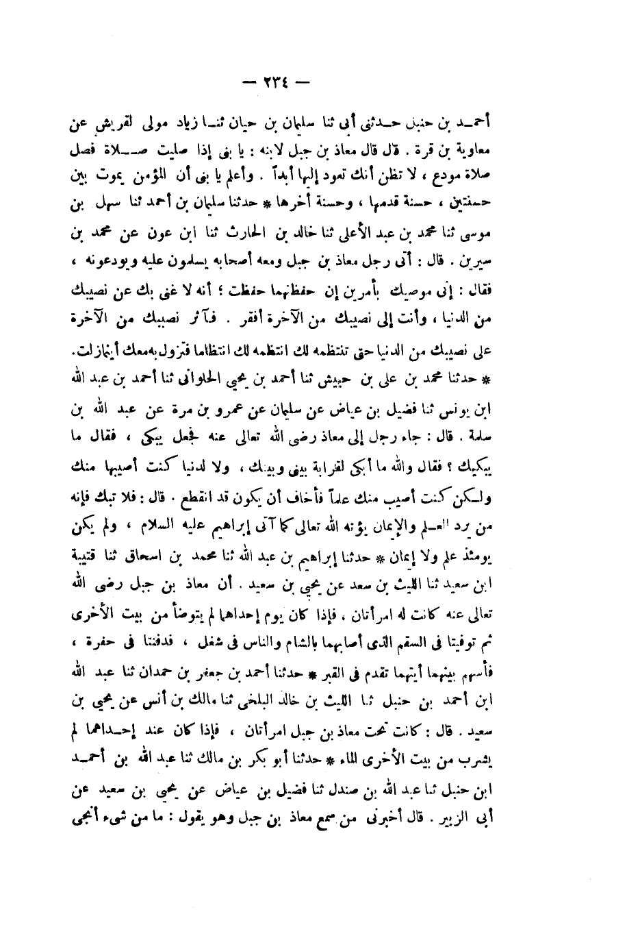 حَدَّثَنَا سُلَيْمَانُ بْنُ أَحْمَدَ، ثَنَا سَهْلُ بْنُ مُوسَى، ثَنَا مُحَمَّدُ بْنُ عَبْدِ الْأَعْلَى، ثَنَا خَالِدُ بْنُ الْحَارِثِ، ثَنَا ابْنُ عَوْنٍ، عَنْ مُحَمَّدِ بْنِ سِيرِينَ، قَالَ: أَتَى رَجُلٌ مُعَاذَ بْنَ جَبَلٍ، وَمَعَهُ أَصْحَابُهُ، يُسَلِّمُونَ عَلَيْهِ وَيُوَدِّعُونَهُ، فَقَالَ: «إِنِّي مُوصِيكَ بِأَمْرَيْنِ، إِنْ حَفِظْتَهُمَا حُفِظْتَ، إِنَّهُ لَا غِنَى بِكَ عَنْ نَصِيبِكَ مِنَ الدُّنْيَا، وَأَنْتَ إِلَى نَصِيبِكَ مِنَ الْآخِرَةِ أَفْقَرُ، §فَآثِرْ نَصِيبَكَ مِنَ الْآخِرَةِ عَلَى نَصِيبِكَ مِنَ الدُّنْيَا حَتَّى تَنْتَظِمَهُ لَكَ انْتِظَامًا فَتَزُولَ بِهِ مَعَكَ أَيْنَمَا زِلْتَ»