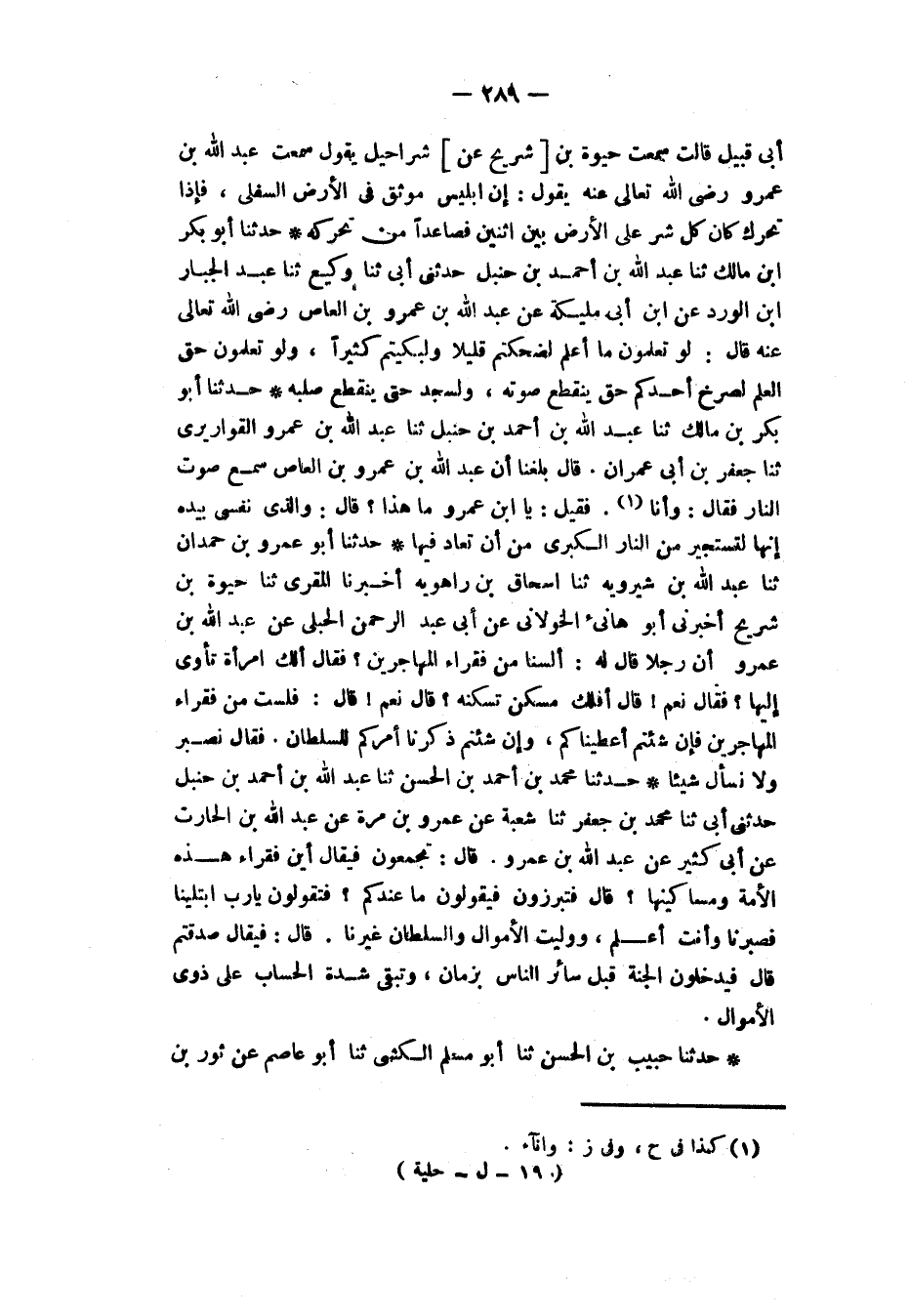 أَبِي قَبِيلٍ، قَالَ: سَمِعْتُ حَيْوَةَ بْنَ [شُرَيْحٍ عَنْ] شَرَاحِيلَ يَقُولُ: سَمِعْتُ عَبْدَ اللَّهِ بْنَ عَمْرٍو رَضِيَ اللَّهُ تَعَالَى عَنْهُ يَقُولُ: إِنَّ إِبْلِيسَ مُوثَقٌ فِي الْأَرْضِ السُّفْلَى، فَإِذَا تَحَرَّكَ كَانَ كُلُّ شَرٍّ عَلَى الْأَرْضِ بَيْنَ اثْنَيْنِ فَصَاعِدًا مِنْ تَحَرُّكِهِ.