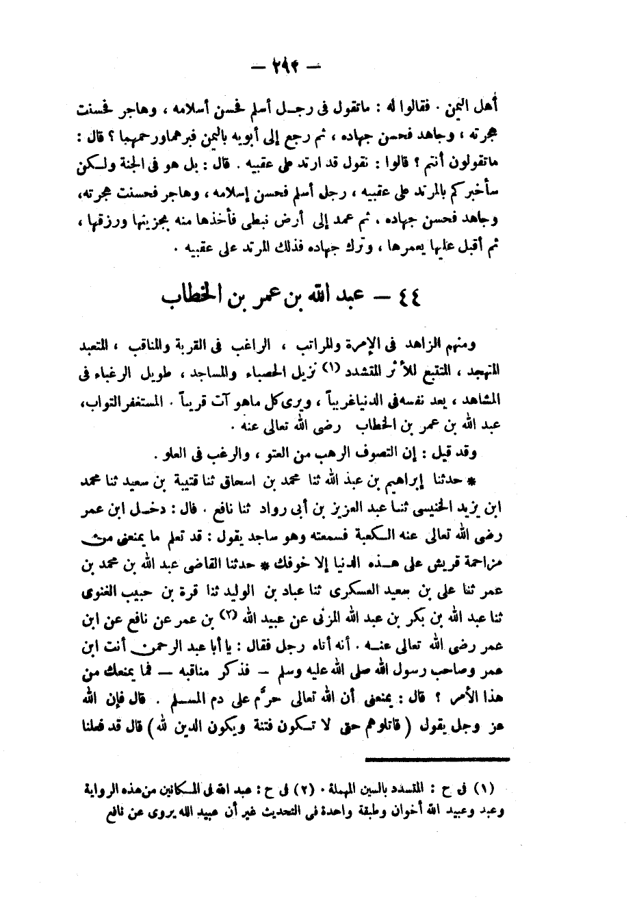 وَمِنْهُمُ الزَّاهِدُ فِي الْإِمْرَةِ وَالْمَرَاتِبِ، الرَّاغِبُ فِي الْقُرْبَةِ وَالْمَنَاقِبِ، الْمُتَعَبِّدُ الْمُتَهَجِّدُ، الْمُتَتَبِّعُ لِلْأَثَرِ الْمُتَشَدِّدُ نَزِيلُ الْحَصْبَاءِ وَالْمَسَاجِدِ، طَوِيلُ الرَّغْبَاءِ فِي الْمَشَاهِدِ، يَعُدُّ نَفْسَهُ فِي الدُّنْيَا غَرِيبًا، وَيَرَى كُلَّ مَا هُوَ آتٍ قَرِيبًا، الْمُسْتَغْفِرُ التَّوَّابُ، عَبْدُ اللَّهِ بْنُ عُمَرَ بْنِ الْخَطَّابِ رَضِيَ اللَّهُ تَعَالَى عَنْهُ.