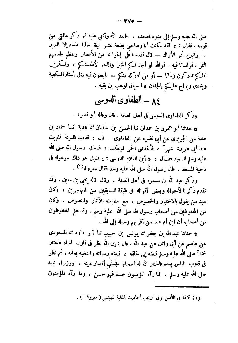 §الطُّفَاوِيُّ الدَّوْسِيُّ وَذَكَرَ الطُّفَاوِيَّ الدَّوْسِيَّ فِي أَهْلِ الصُّفَّةِ، قَالَ: وَقَالَهُ أَبُو نَضْرَةَ