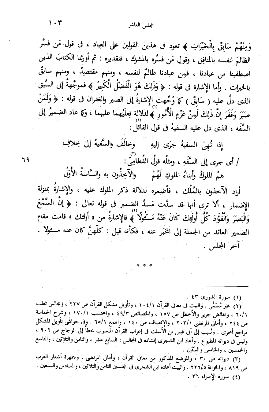 (¬3) ديوانه ص 30، والموضع المذكور من معانى القرآن، وأمالى المرتضى، وجمهرة أشعار العرب ص 819، والخزانة 5/ 226. والبيت أعاده ابن الشجرى فى المجلسين الثامن والثلاثين، والسادس والسبعين.