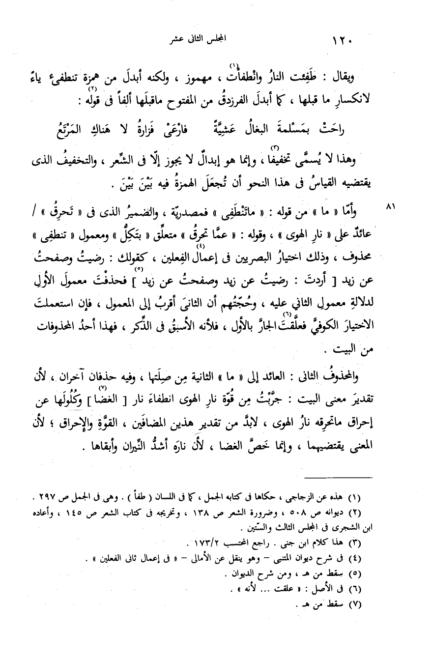(¬1) هذه عن الزجاجى، حكاها فى كتابه الجمل، كما فى اللسان (طفأ). وهى فى الجمل ص 297.