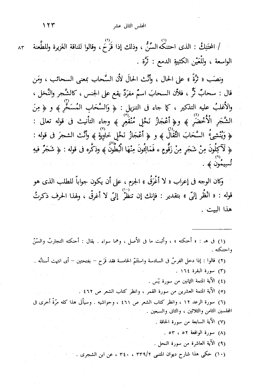 (¬6) سورة الرعد 12، وانظر كتاب الشعر ص 461، وحواشيه. وسيأتى هذا كله مرّة أخرى فى المجلسين الثامن والثلاثين، والثانى والسبعين.