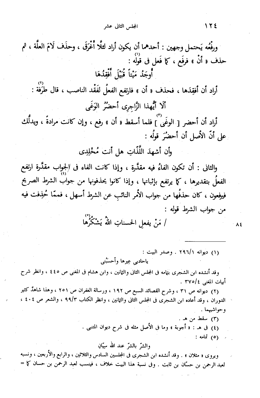 (¬1) ديوانه 1/ 296. وصدر البيت: يا حاديى عيرها وأحسبنى وقد أنشده ابن الشجرى بتمامه فى المجلس الثانى والثمانين، وابن هشام فى المغنى ص 445، وانظر شرح أبيات المغنى 4/ 375.