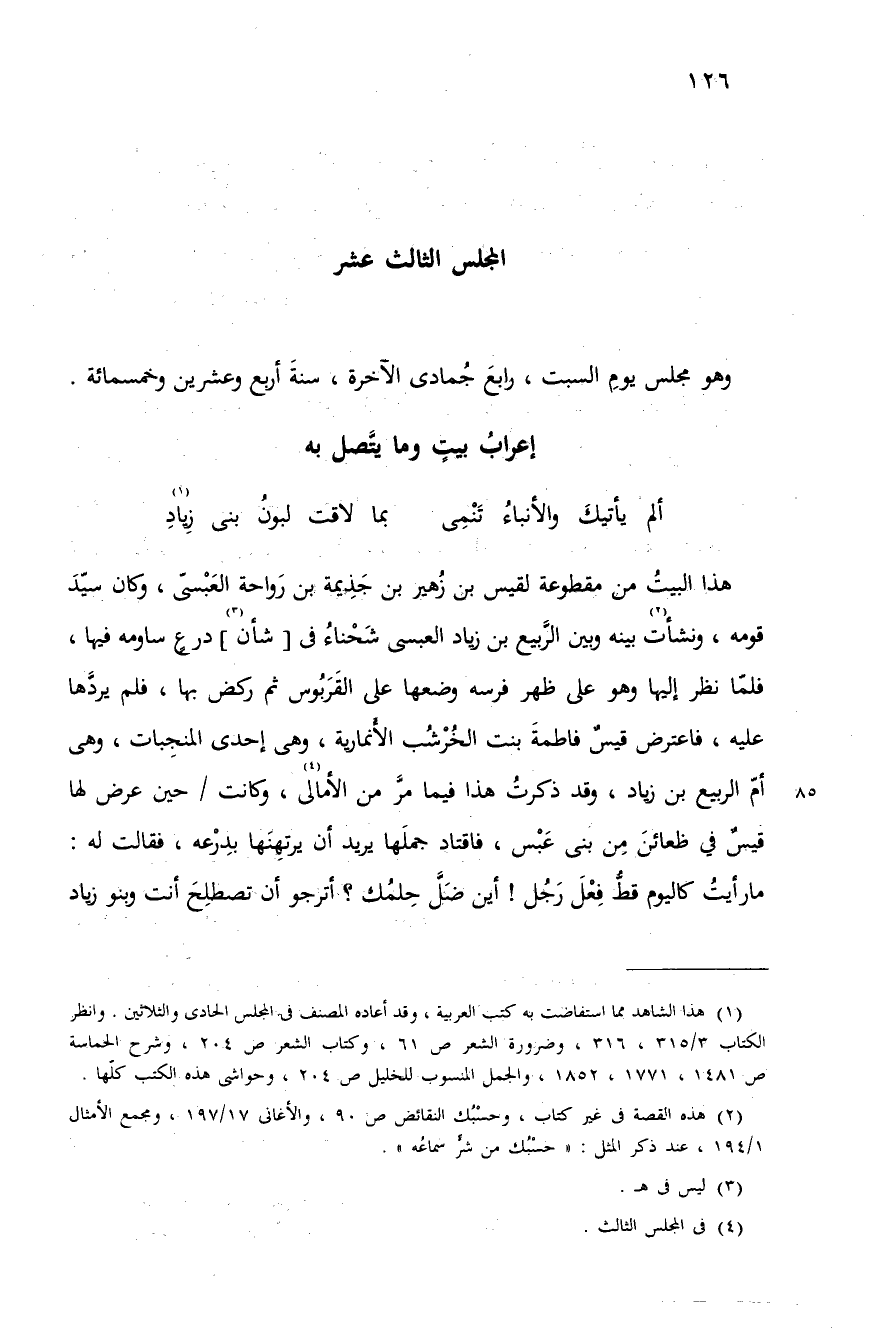 (¬1) هذا الشاهد مما استفاضت به كتب العربية، وقد أعاده المصنف فى المجلس الحادى والثلاثين. وانظر الكتاب 3/ 315،316، وضرورة الشعر ص 61، وكتاب الشعر ص 204، وشرح الحماسة ص 1481،1771،1852، والجمل المنسوب للخليل ص 204، وحواشى هذه الكتب كلّها.