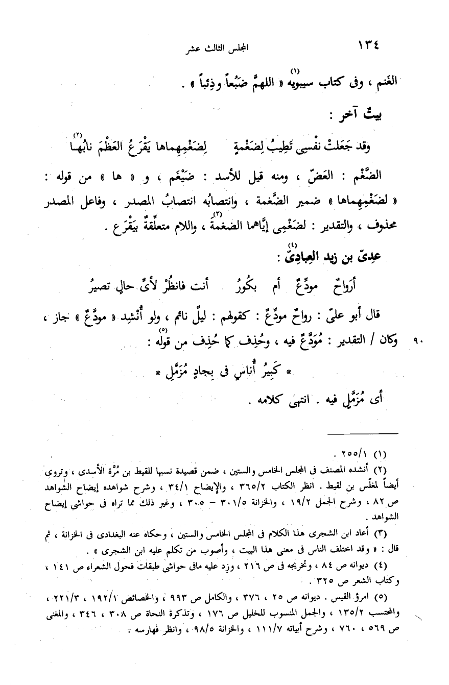 (¬2) أنشده المصنف فى المجلس الخامس والستين، ضمن قصيدة نسبها للقيط بن مرّة الأسدى، وتروى أيضا لمغلّس بن لقيط. انظر الكتاب 2/ 365، والإيضاح 1/ 34، وشرح شواهده إيضاح الشواهد ص 82، وشرح الجمل 2/ 19، والخزانة 5/ 301 - 305، وغير ذلك مما تراه فى حواشى إيضاح الشواهد.