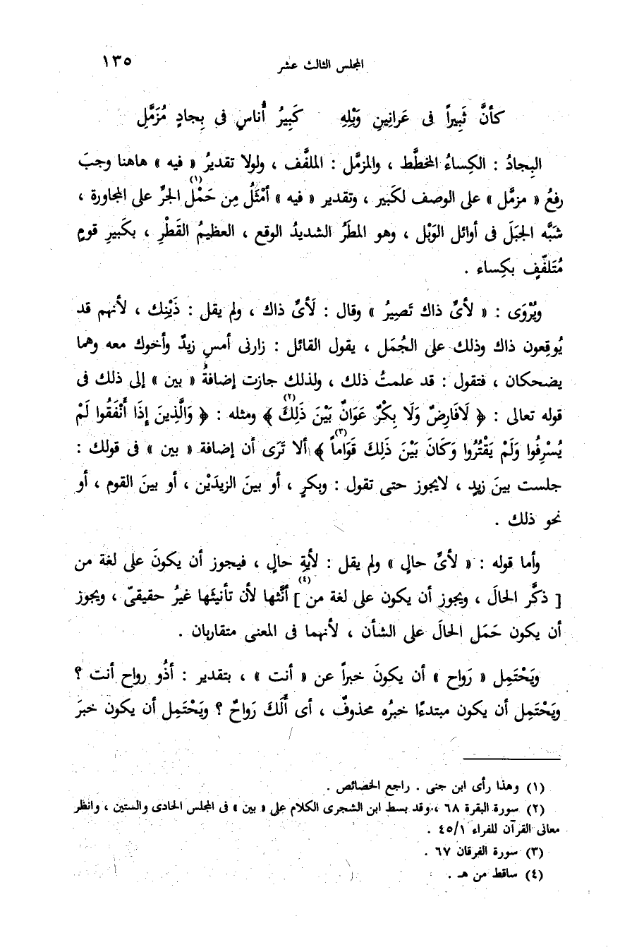 (¬2) سورة البقرة 68، وقد بسط ابن الشجرى الكلام على «بين» فى المجلس الحادى والستين، وانظر معانى القرآن للفراء 1/ 45.