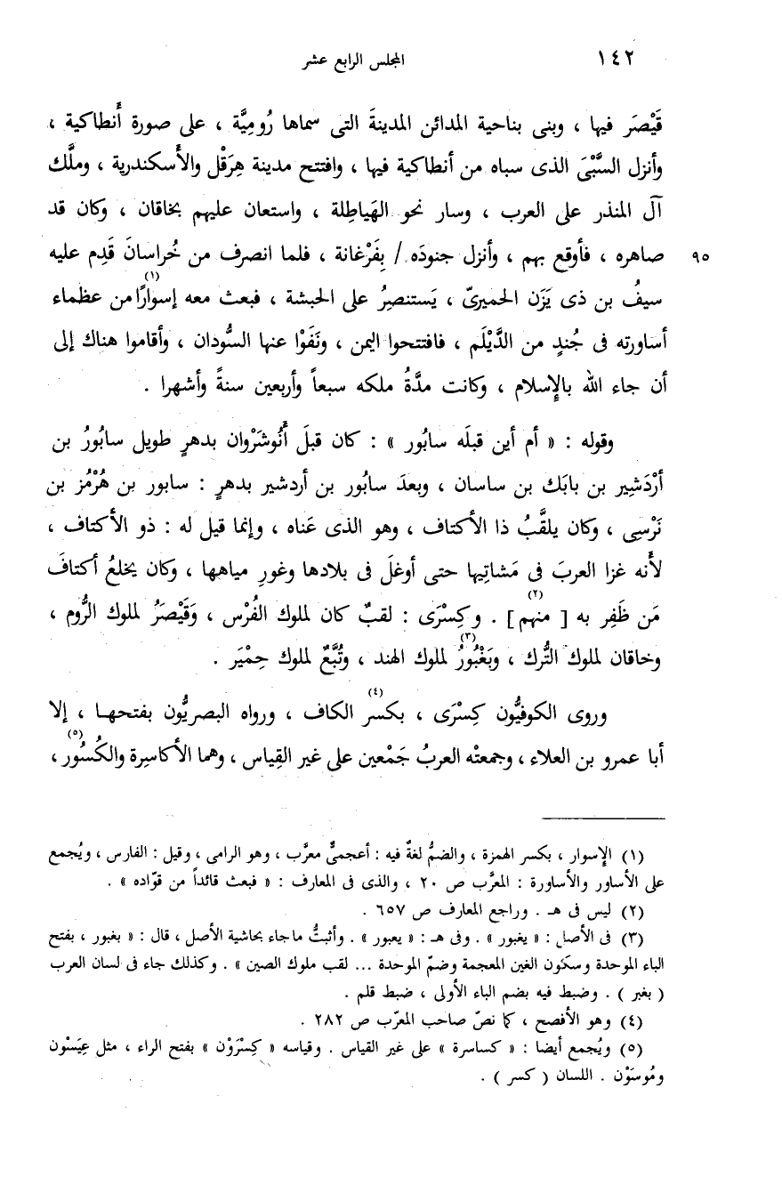 وروى الكوفيّون كسرى، بكسر (¬4) الكاف، ورواه البصريّون بفتحها، إلا أبا عمرو بن العلاء، وجمعته العرب جمعين على غير القياس، وهما الأكاسرة والكسور (¬5)،